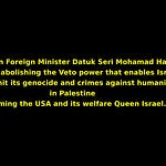 The root cause of all problems in the region and most of the world is the 'self-inflicting wound the world caused by creating Israel' by giving the land of the Palestinians to groups of the same religion.